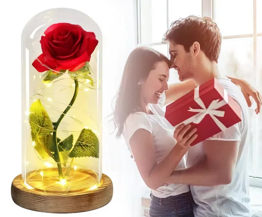 Róża z efektem LED w szkle- prezent na walentynki